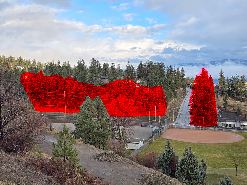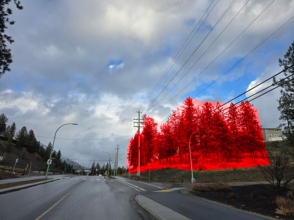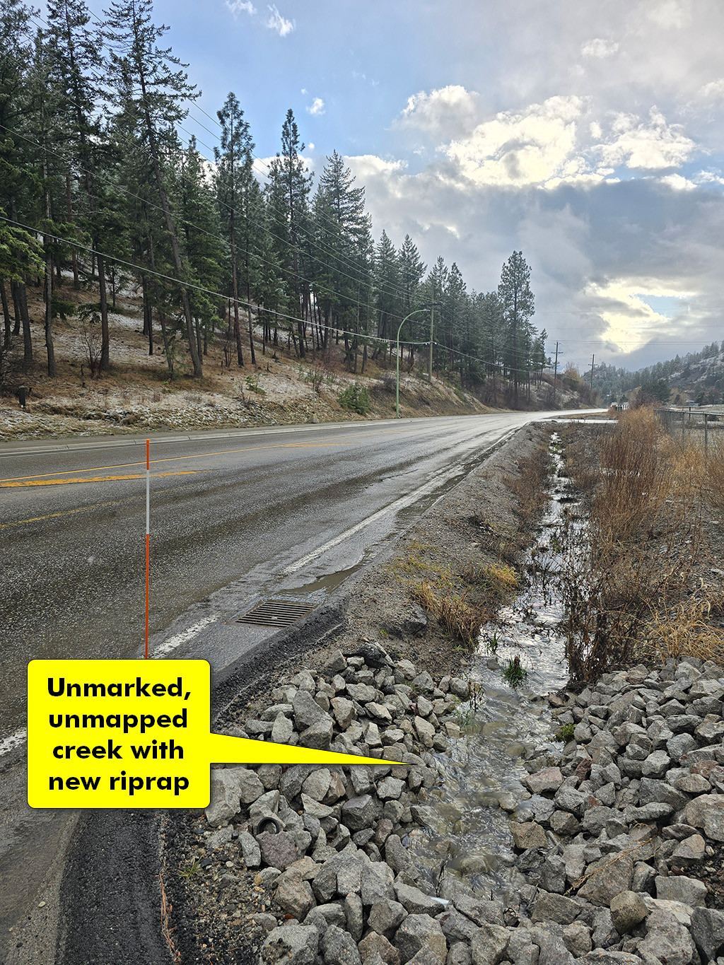 Additionally, it could be that BC Hydro did not include the seasonal creek that runs north from Shannon Woods Dr. to John Moore Creek. This area was subject to flooding in 2024, the City of West Kelowna improved the watercourse with riprap rocks following that event.